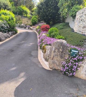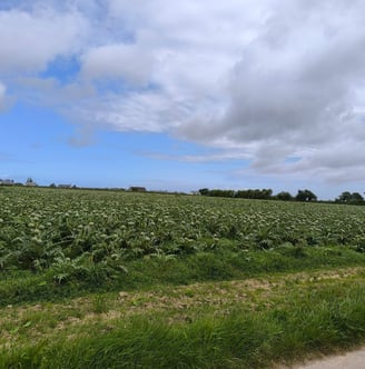 Nous continuons le parcours en remontant vers le nord, en traversant quelques villages, en changeant de chemin et de paysage au gré des kilomètres. Parfois un peu de route le long de champ d'artichaut, de très jolis villages surplombant l'océan, des petits chemins entourés de fougères ou parfois en pleine forêt entourés par d'immense feuillue, chêne, châtaigner et autres houx.