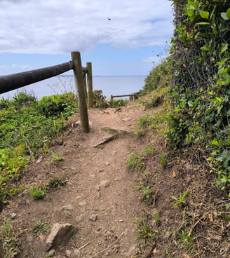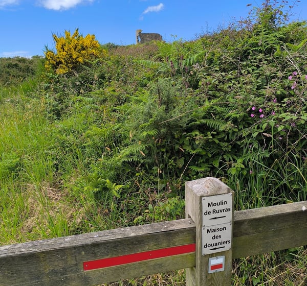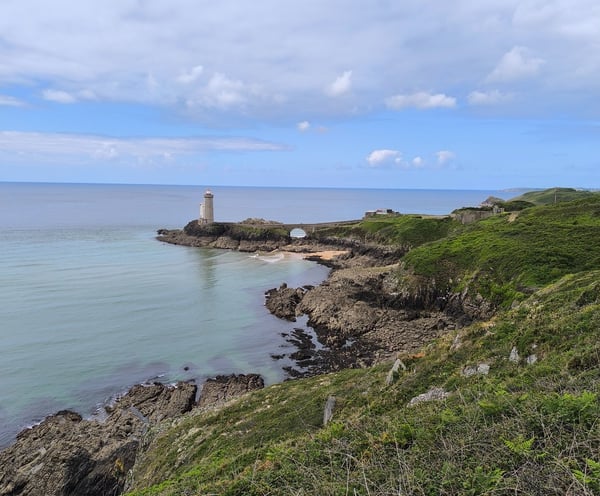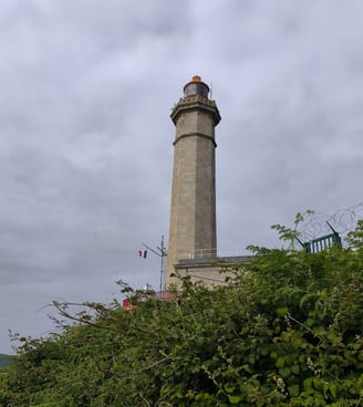 Nous voilà donc parti du bout de la base navale, au lieu dit la Maison Blanche. Ca ne s'invente pas la veille des commémorations du débarquement. La route monte assez rapidement vers le premier phare de la journée : le phare du Portzic. Plus qu'un phare, une vigie est présente sur le lieu et la zone est une zone militaire. Nous allons d'ailleurs en croiser beaucoup aujourd'hui. Ce qui tend à prouver l'importance depuis des siècles que revêt la rade de Brest et son arsenal. S'en suit un long chemin très vallonné, semé de nombreuses marches, pour atteindre le second phare. Le phare du petit Minou en rénovation pour deux ans. Nous croiserons entre les deux le fort du Mengant. Zone militaire qui laisse apparaitre une sorte d'ascenseur en crémaillère quasiment entièrement recouvert par la végétation.