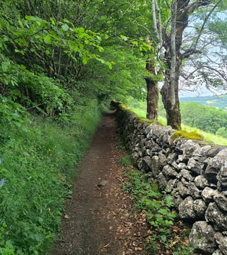 Le début de la rando n'est pas très intéressant. Nous faisons plus de 3 kilomètres sur la route et nous croisons nombre de randonneurs car nous partageons le GR avec celui de St Jacques de Compostelle. Cette foule me conforte dans l'idée que je ne ferai jamais ce circuit.