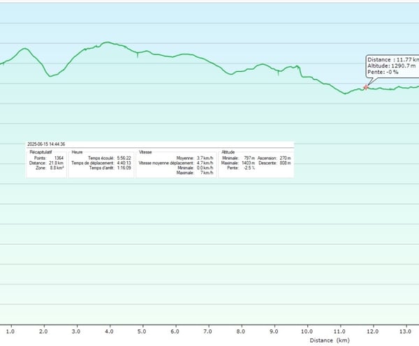 Le parcours d'aujourd'hui est une étape de transition, très peu de dénivelé positif (270 de D+) mais surtout une très longue descente (808 de D-).