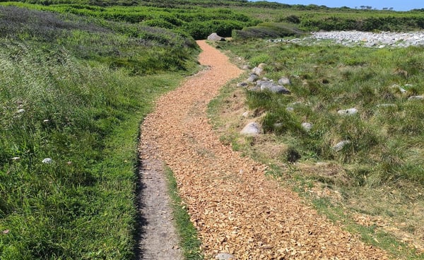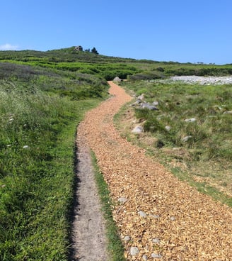 Le parcours se poursuit sur le tour d'une île au bord de l'océan. Ce parcours est magnifique, il est peu vallonné mais offre un spectacle inoubliable. Les locaux ont eu l'idée d'utiliser le bois des arbres couchés par la tempête pour tracer le chemin de randonnée . C'est agréable pour la marche, plus souple, mais aussi pour l'odeur très agréable que dégage ceux-ci.