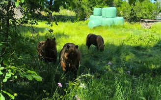 Le premier kilomètre ressemble à un parcours du combattant. Le tracé n'est pas du tout présent dans le village et notre GPS nous sauve pour sortir proprement. Puis nous empruntons un chemin avec de l'herbe pas coupée et qui nous arrive à hauteur des bras. Comble du délire, en plus de ne pas savoir où nous mettons les pieds, il y a de gentils orties qui nous chatouillent les jambes....