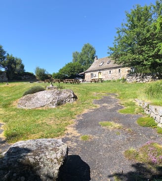La suite est plus engageante avec une remontée sur le plateau et une vue intéressante sur la vallée de la Bès puis sur les contreforts de l'Aubrac. Nous passerons aussi à travers 3 petits villages d'une dizaine d'habitants. Ce qui est rassurant pour ce pays, c'est que les maisons sont restaurées dans leur majorité et que les jardins sont entretenus. Cela signifie que ces villages ne meurent pas.