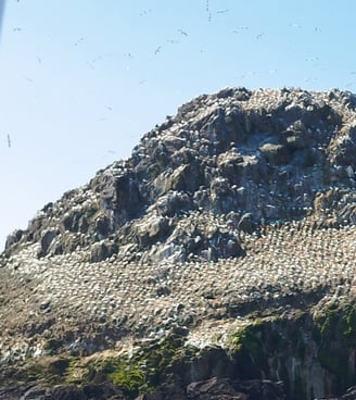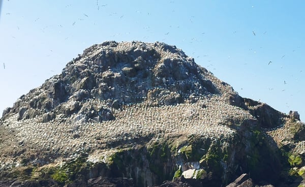 Nous avons changé de département, de la côte d'Armor au Finistère. Nous avons profité hier de ce jour de liaison pour faire la croisière des 7 îles au départ de Perros-Guirec. Découverte de la faune et de la flore sur ces îles, mais surtout de l'histoire de ces moines et marins vivants sur celles-ci. Je vous ai d'ailleurs mis une photo de la colonie de fous de Bassan vivants sur l'une des principales îles, l'île Rouzic.
