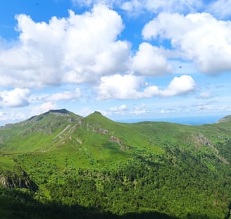 Septième et avant dernier jour, le menu du jour est la montée au Puy Mary suivie d'une longue descente sur la station d'hiver du Lioran.