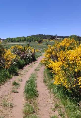 Puis des chemins très "Haute-Loire", des champs de blé et de lentilles, une terre rouge ou grise avec des morceaux de pouzzolane.