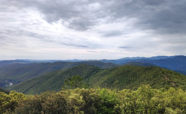 La condition est là, l'étape est intéressante mêlant petit chemin et vue imprenable sur les Cévennes que nous nous apprêtons à quitter.