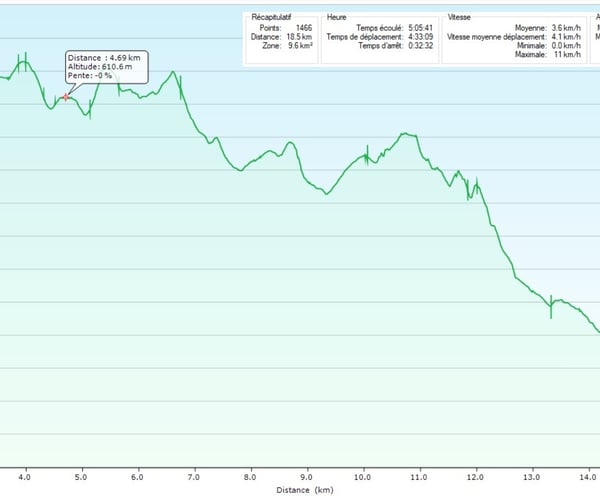 Voici le bilan en quelques chiffres : en 13 jours nous avons parcourus 266,8 kilomètres, montés 7863 mètres, descendus 8747 mètres et tout cela en 72 heures et 3 minutes de balade.
