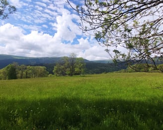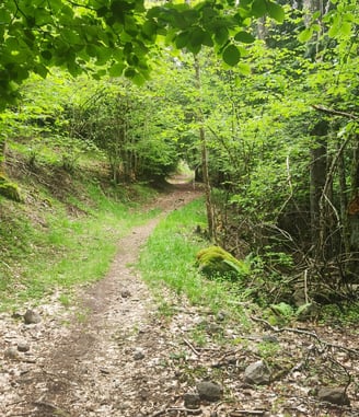 Heureusement, nous sommes accompagnés du tintinnabulement des cloches accrochées au cou des vaches. Et quand celles-ci se taisent, nous sommes envahis du silence et du calme juste entrecoupé de quelques bruits d'oiseau. Nous nous sommes même surpris à marcher un bon kilomètre sans rien dire, juste profiter et écouter.